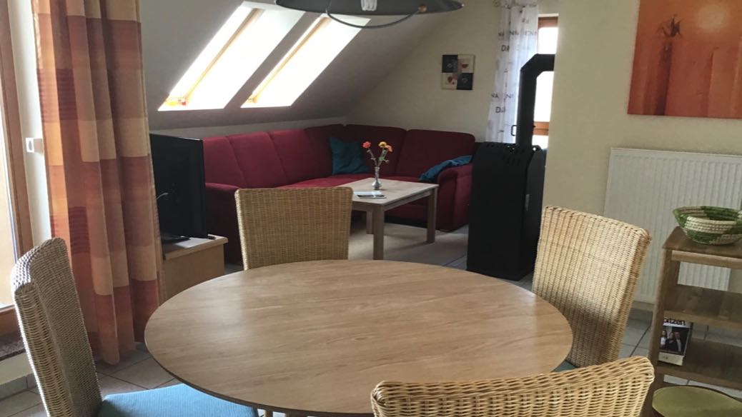 Sie sind hier: Startseite » Haus Sarah Ferienwohnungen » DG rechts Sarah 4 Pers. Komfortable Ferienwohnung Dachgeschoss rechts - mit Blick zum Golfplatz Geniessen Sie den Rundgang: